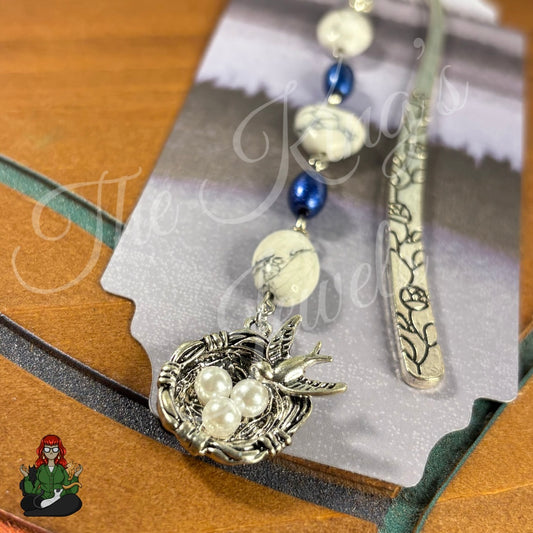 GwennaBelle - Blue Bird Nest Pearl & Howlite Bead Bookmark!