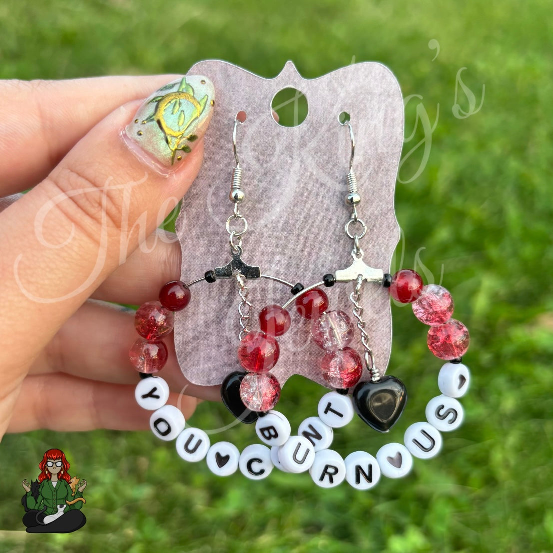Channel your inner rebel with these bold hoop earrings that celebrate defiance and dark mystique. Featuring an edgy design perfect for witchy aesthetics and gothic vibes, the "You Can't Burn Us" message speaks to resilience and unapologetic self-expression. These statement hoops are ideal for anyone who embraces their shadow side and refuses to dim their light. Wear them as a reminder that your power can't be extinguished.